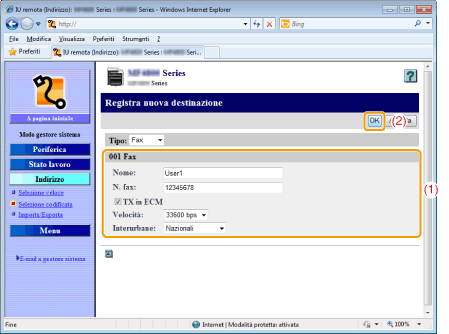 Specificare le impostazioni richieste nella schermata di modifica delle destinazioni, quindi fare clic su [OK].