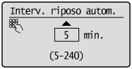 Impostazioni dell'intervallo di riposo automatico:È possibile impostare l'intervallo di riposo automatico compreso tra <5> e <240> minuti, in intervalli di un minuto. L'impostazione predefinita è <5> minuti.