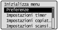 Inizializzazione delle impostazioni di menu