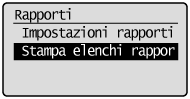 ] per selezionare <Stampa elenchi rapporti>, quindi premere [OK].