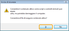 Se viene visualizzato un messaggio di avviso di protezione:![]() Effettuare le seguenti operazioni.