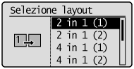 Selezionare <Selezione layout> per modificare il layout della copia.
