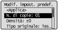 I valori predefiniti della copia sono relativi alla funzione applicata quando la macchina viene accesa, viene premuto [