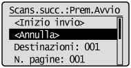 Quando compare <Scansione...> dopo l'avvio della procedura di invio del fax, premere [] oppure [] per selezionare <Annulla>, quindi premere [OK].