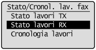 ] per selezionare <Stato lavori RX>, quindi premere [OK].