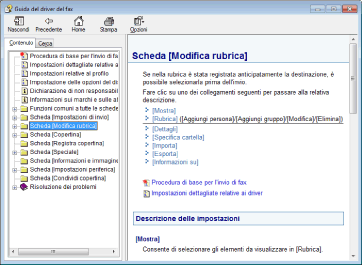 La guida in linea contiene informazioni aggiuntive su ciascuna funzione di fax. Se l'e-Manual non contiene le informazioni necessarie, consultare la guida in linea.