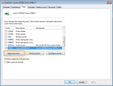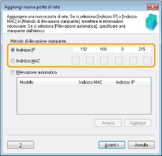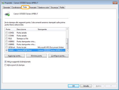 Se il driver della stampante installato utilizza una porta diversa da quella assegnata alla macchina, è necessario configurare la porta in modo da farla corrispondere all'indirizzo IP della macchina.