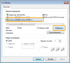 ] (Dispositivi) → la stampante in uso → [Stampa]. Quando si stampa con questa procedura, è possibile impostare solo alcune funzioni di stampa. |