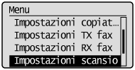 ] per selezionare <Impostazioni scansione>, quindi premere [OK].
