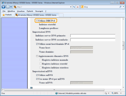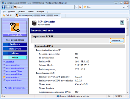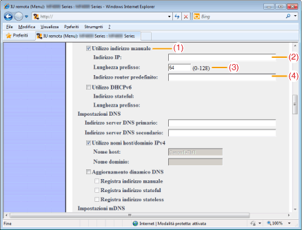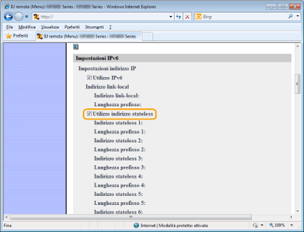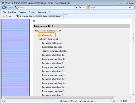 Prima di impostare l'indirizzo IP, vedere "Attenzione (Impostazione dell'indirizzo IPv6)".