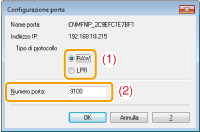 Selezionare [LPR] o [RAW] in [Tipo di protocollo].