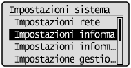 ] per selezionare <Impostazioni informaz. gestore sistema>, quindi premere [OK].