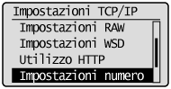] per selezionare <Impostazioni TCP/IP>, quindi premere [OK].