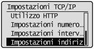 ] per selezionare <Impostazioni TCP/IP>, quindi premere [OK].