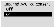 ] per selezionare <Impostazioni indirizzi MAC RX consentiti>, quindi premere [OK].