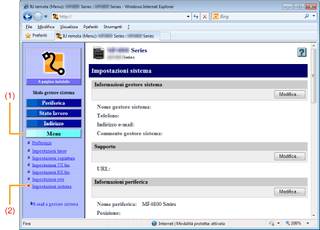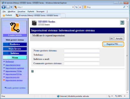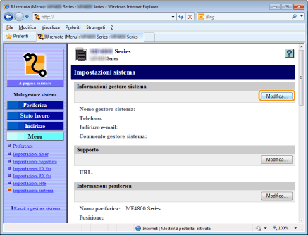 Fare clic su [Modifica] sul lato destro di [Informazioni gestore sistema].