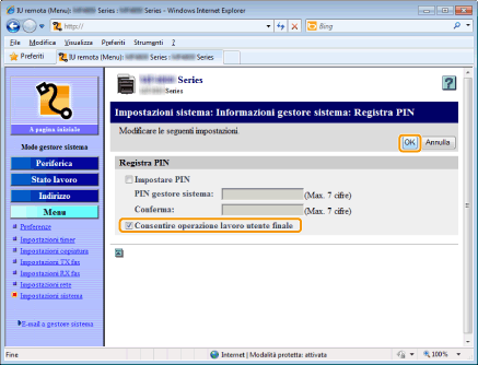 Selezionare la casella di controllo [Consentire operazione lavoro utente finale], quindi fare clic su [OK].