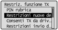 ] per selezionare <Restrizioni funzione TX>, quindi premere [OK].
