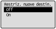 ] per selezionare <Restrizioni nuove destinazioni>, quindi premere [OK].