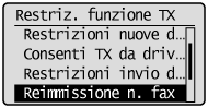 ] per selezionare <Restrizioni funzione TX>, quindi premere [OK].