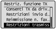 ] per selezionare <Restrizioni funzione TX>, quindi premere [OK].