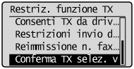 ] per selezionare <Restrizioni funzione TX>, quindi premere [OK].