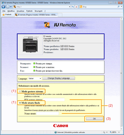 Selezionare [Modo gestore sistema] o [Modo utente finale].