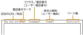 登録した発信元の情報は、ファクスを送信したときに、発信元記録として相手の出力紙にプリントされます。