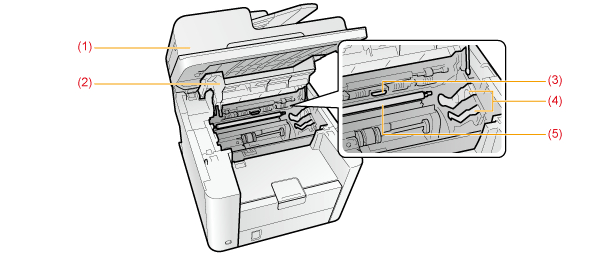 トナーカートリッジの交換や、つまった用紙を取り除くときに開きます。