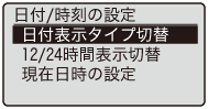 ]で<日付/時刻の設定>を選択して、[OK]を押します。