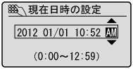 ][ ]を押してカーソルを動かし、数字を選ぶために[ ][ ]を押して日付と時刻を入力することもできます。[ ][ ]を押して<AM><PM>を選択します。![]() ![]() |