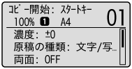 コピーの設定についてここで行う設定は、現在行っているコピー操作のみに有効です。すべてのコピー操作に有効な設定をするには「コピーのデフォルト値を変更する」をご覧ください。