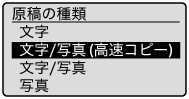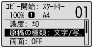 <濃度>が<自動濃度>に設定されている場合、<文字/写真(高速コピー)>、<文字/写真>、<写真>を選択すると、<濃度>は<手動濃度>に変更されます。