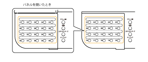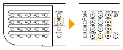 ](短縮)を押してから、3桁の登録先番号(001~200)をテンキーで入力します。