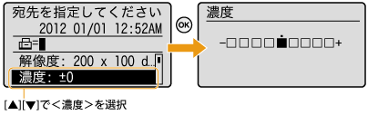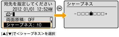文字や線を鮮明に読み込む場合、<+>側に調節します。青焼き原稿や薄い鉛筆書きの原稿などの読み込みに適しています。