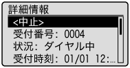 ]で<はい>を選択して、[OK]を押します。![]() 送信ジョブが中止されます。同報送信の場合は、すべての宛先への送信が中止されます。