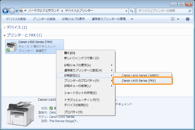 設定]→[コントロールパネル]→[デバイスとプリンターの表示]をクリックまたはタップします。Windows Vistaの場合は、[