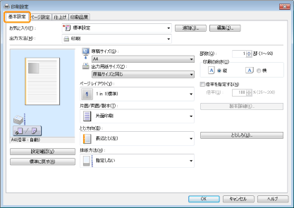 お使いのOS、プリンタードライバーの種類およびバージョンによって画面が異なることがあります。