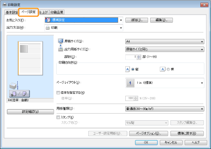 プリンタードライバー画面の表示方法については、「プリントする」または「あらかじめプリントの設定をする」を参照してください。