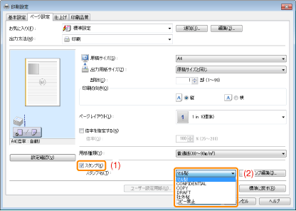 お使いのOS、プリンタードライバーの種類およびバージョンによって画面が異なることがあります。