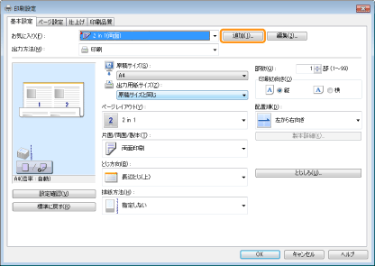 印刷設定画面の表示方法については、「プリントする」または「あらかじめプリントの設定をする」を参照してください。