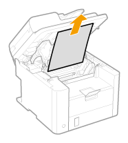 用紙の先端が出たら、つまった用紙をゆっくり引っぱって取り除きます。