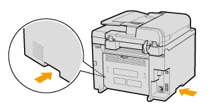 後端の用紙ガイドが給紙カセットからはみ出ているとき後端の用紙ガイドを、給紙カセットに収まる位置まで戻します。