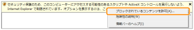 情報バーをクリックして、ポップアップメニューから[ブロックされているコンテンツを許可]を選択します。