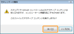 お使いのOSによっては、セキュリティー保護のメッセージが表示されます。