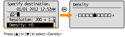 To clearly scan text or lines, adjust this setting to the appropriate level on the <+> scale. It is best suited for scanning blueprints and thinly penciled documents.