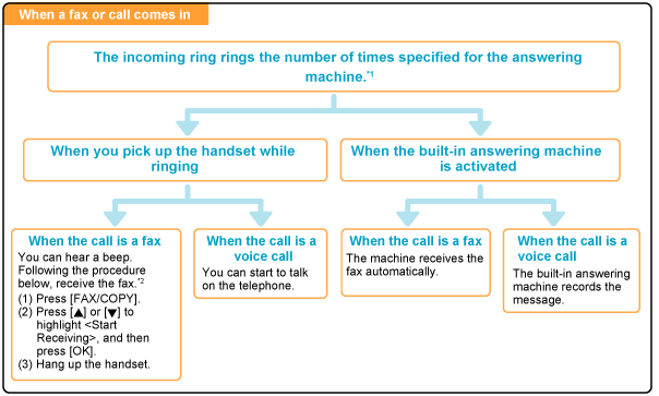 You can automatically receive a fax and answer an incoming call by picking up the handset.