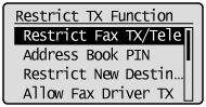 ] to highlight <Restrict Fax TX/Telephone Dialing>, and then press [OK].