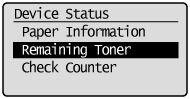 Press [] or [] to highlight <Remaining Toner>, and then press [OK].
