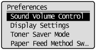 ] or [ ] to highlight <On> (sound enabled) or <Off> (sound disabled), and then press [OK]. If <Only When Error Occurs> is selected, the machine makes a sound only if an error occurs.